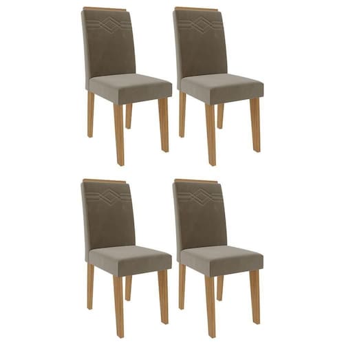 Conjunto 4 Cadeiras Taís Nature/suede Joli - Cimol Móveis Nature/suede Joli Conjunto 4 Cadeiras Taís - Cimol Móveis Com um design sofisticado e elegante, o Conjunto de Cadeiras Taís é ideal para compor sua sala de jantar com charme e conforto. Sua estrutura em MDF com pintura UV garante durabilidade, enquanto o assento revestido em tecido e a espuma de alta densidade oferecem máximo aconchego. O encosto com detalhes bordados e a moldura em MDF com acabamento em laca adicionam um toque refinado ao visual. Com pés em MDF e capacidade para suportar até 100kg, é a escolha perfeita para quem valoriza qualidade e estilo. ESPECIFICAÇÕES: - Estrutura em MDF - Pintura UV - Revestimento em tecido - Espuma de alta densidade - Encosto com detalhes bordados - Moldura em MDF com acabamento em laca - Pés em MDF - Cada cadeira tem capacidade para suportar até 100kg