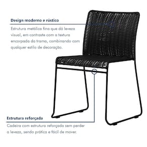 Transforme sua sala de jantar ou área gourmet com essa cadeira charmosa e cheia de estilo! Seu encosto ergonômico com trama em fibra sintética garante conforto para longos momentos à mesa, seja para um jantar especial ou uma boa conversa com as amigas. A estrutura proporciona leveza e resistência, enquanto o design moderno traz um toque sofisticado e acolhedor ao ambiente. Prática e versátil, ela combina com diversos estilos de decoração, do mais minimalista ao mais descontraído. Uma escolha perfeita para quem busca unir beleza, funcionalidade e bem-estar no dia a dia.