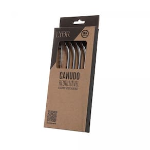 Conjunto 4 Canudos Aço Inox Reutilizáveis com Escova para Limpeza Lyor 21,5cm