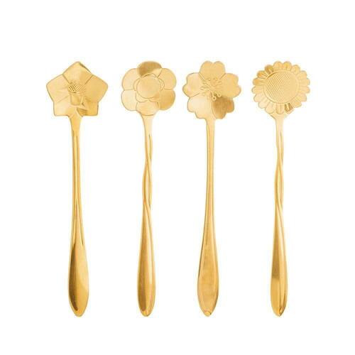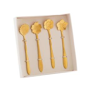 Conjunto 4 Colheres Chá Flores Aço Inox Dourado