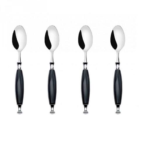 O conjunto de 4 colheres para sobremesa da Linha Country da Bugatti apresenta cabo em acrílico com efeito madrepérola suavemente arredondado e aro cônico em aço polido.