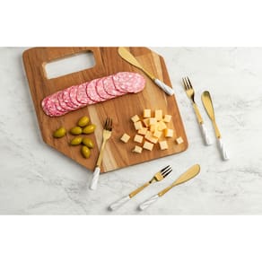 Perfeitos para você servir itens como patês ou até mesmo para deixar próximo a sua manteigueira ou próximo ao seu pote de geleia preferida. Produzida em aço inox e cabo em cerâmica, com design clean e moderno e perfeito para combinar com a sua cozinha. Além da cor dourada, que traz muita sofisticação a peça.