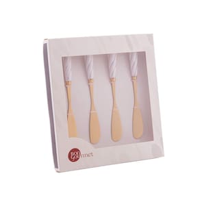 Conjunto 4 Espátulas Em Inox Para Chá Com Cabo De Cerâmica