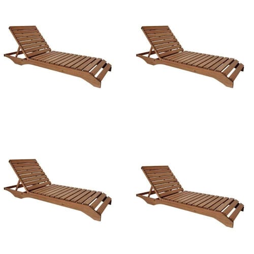 Conjunto 4 Espreguiçadeiras Para Jardim em Madeira Maciça Chaise Long