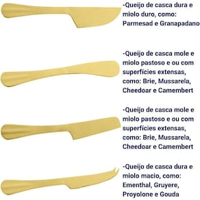 Versatilidade para Diferentes Queijos Cada faca foi projetada com uma lâmina específica para diferentes tipos de queijos, proporcionando precisão no corte e permitindo que você desfrute plenamente das nuances de cada variedade.