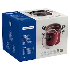 Para preparar legumes e vegetais com mais praticidade, conte com o jogo 4 funções Tramontina Paris em alumínio com revestimento interno e externo em antiaderente Starflon Max vermelho com tampa de vidro! Ele é produzido em alumínio com espessura de 1,8 milímetros e conta com tampa de vidro temperado que auxilia no cozimento dos alimentos, que é rápido e uniforme. Seu revestimento interno e externo é em antiaderente Starflon Max, característica que evita que os alimentos grudem e o torna superfácil de limpar. Para sua , as alças são em baquelite e seu pegador em nylon, ambos materiais antitérmicos que não aquecem. Além de todas essas características, o Jogo 4 Funções é muito fácil de limpar e pode ser levado à máquina de lavar louças. Com a Tramontina, ficou muito mais fácil ter uma vida mais saudável e cheia de nutrientes!