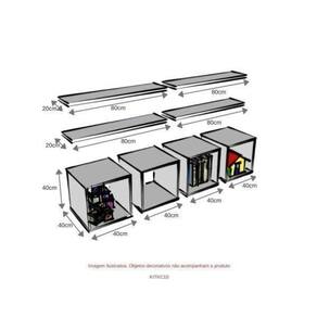 Conjunto 4 Nichos e 4 Prateleiras Kit Cubos Bramov Móveis Preto. A coleção Kit Cubos é perfeita para quem quer deixar o ambiente mais bonito e aconchegante! Além de ser ótimo para complementar a decoração, ele também possui multifunções, diversos ambientes da casa. É produzido com materiais de alta qualidade e consegue unir elegância no momento de compor um lindo projeto! Ean: 7908439610568