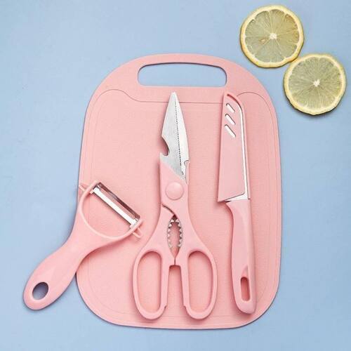 Conjunto 4 peças de utensílios de cozinha - rosa Você já se sentiu perdido na cozinha, tentando preparar uma refeição e percebendo que não tem as ferramentas certas Isso pode ser frustrante e demorado, fazendo com que você desista de cozinhar e opte por soluções mais fáceis, mas menos saudáveis. O conjunto perfeito de utensílios de cozinha é a solução que você precisa com uma faca, uma tesoura multifuncional, um descascador e uma tábua de corte, você terá tudo o que precisa para preparar suas refeições com estilo e agilidade. As lâminas em aço inoxidável garantem cortes precisos e durabilidade, enquanto o design ergonômico proporciona conforto durante o uso. Além disso, a tábua resistente é fácil de lavar, tornando o processo ainda mais prático. Benefícios - lâminas afiadas em aço inox para maior performance - pegas ergonômicas e confortáveis - tábua resistente, fácil de lavar - ideal para cortes, descascas e preparo diário Especificações técnicas - material: plástico e aço - dimensões: tesoura: alt.: 20,5cm x larg.: 7,5cm / descascador: alt.: 11,5cm x larg.: 7,5cm / faca: alt.: 20cm x larg.: 2,5cm / tábua de corte: alt.: 25cm x larg: 18,5cm - cor: rosa Conteúdo da embalagem - 01 conjunto 4 peças de utensílios de cozinha - rosa Não perca a oportunidade de transformar sua experiência na cozinha adquira já o seu conjunto de utensílios e comece a cozinhar com mais facilidade e estilo Informações importantes sobre a compra - com de fábrica Dúvidas frequentes: 2 - em quanto tempo meu pedido será enviado 3 - é confiável fazer esta compra Resposta: desde a criação da nossa empresa já temos milhares de clientes satisfeitos em outras lojas online. Somos uma loja oficial neste marketplace. Além de você ter todas as garantias desta plataforma, ainda lhe oferecemos de fábrica. 4 - os produtos possuem Resposta: sim, oferecemos de 30 dias em todos nossos produtos. Caso ocorra qualquer problema iremos tratar da melhor forma para resolver o ocorrido. 5 - essa compra é segura Resposta: sim, oferecemos total segurança na sua compra bem como sigilo dos seus dados. 6 - e se eu não gostar do produto, terei meu dinheiro de volta Resposta: de acordo com o cdc código de defesa do consumidor todo cliente de compras online tem até 7 dias para devolver o produto em caso de arrependimento. E você não terá custo na devolução. Lembrando que você será reembolsado em 100% do valor da compra. Caso você tenha alguma dúvida, nos envie uma mensagem e responderemos o mais rápido possível. Marca: Não Informado