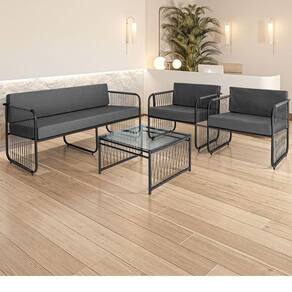 Este elegante conjunto foi desenvolvido para transformar seu ambiente interno com sofisticacao e conforto. Com estrutura em aco carbono de alta qualidade e acabamento em fibra sintetica, oferece resistencia e durabilidade para suportar as diversas ocasioes, ideal para areas como gourmet, externas, de churrasqueira, recepcao, ediculas e muito mais.