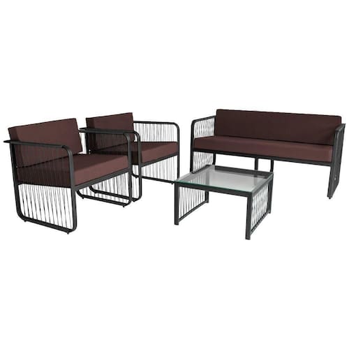 Este elegante conjunto foi desenvolvido para transformar seu ambiente externo com sofisticacao e conforto. Com estrutura em aluminio de alta qualidade e acabamento em fibra sintetica, oferece resistencia e durabilidade para suportar as diversas condicoes climaticas, ideal para areas como gourmet, externas, de churrasqueira, ediculas e muito mais.