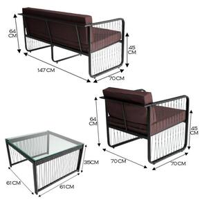 A namoradeira e as poltronas possuem assentos estofados com tecido impermeavel, proporcionando conforto durante longas horas de lazer. O design artesanal de cada peca garante exclusividade, fazendo deste conjunto uma opcao perfeita para quem busca estilo e funcionalidade.