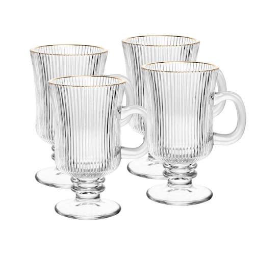 Conjunto 4 Taças Cappuccino 240 ml de Vidro com Fio de Ouro Lines Wolff