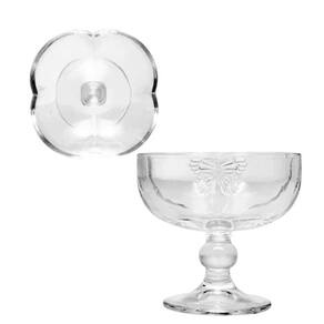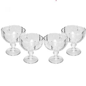 Contém: 4 Taças para Sobremesa Forno: Não Fogão: Não Medidas Produto: Altura 9.60cm x Largura 6.70cm x Comprimento 10.80cm Peso: 1,5 Kg Cor: Incolor Material: Vidro Lavar com detergente neutro, esponja macia e secar imediatamente.