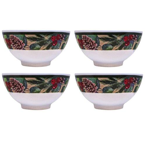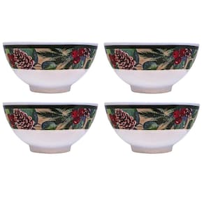 Não perca a oportunidade de adquirir o Conjunto de 4 Tigelas Bowl em Melamina com a estampa natalina de Pinhas e Folhagens. Elevará a experiência das suas refeições durante toda a temporada festiva.