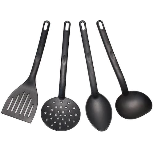 Conteúdo: 1 colher, 1 concha, 1 escumadeira e 1 espátula;