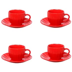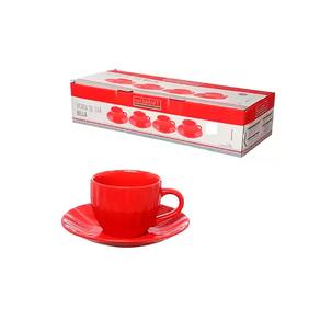 1 Conjunto 4 Xícaras de Café com Pires Cerâmica Bella 150ml Vermelha JGCH064/VM - Hauskraft