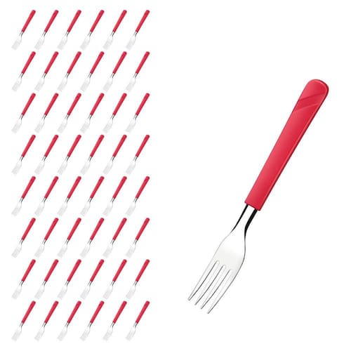 Conjunto de Garfos Os garfos de mesa da linha Luna são um conjunto elegante e funcional para qualquer refeição. Com um cabo vermelho vibrante feito de plástico de alta qualidade, esses garfos são confortáveis de segurar e fáceis de identificar em meio a outros utensílios de mesa. O aço inox das lâminas garante que elas permaneçam brilhantes por um longo tempo, enquanto o design elegante torna os garfos uma adição atraente à sua coleção de utensílios de cozinha.
