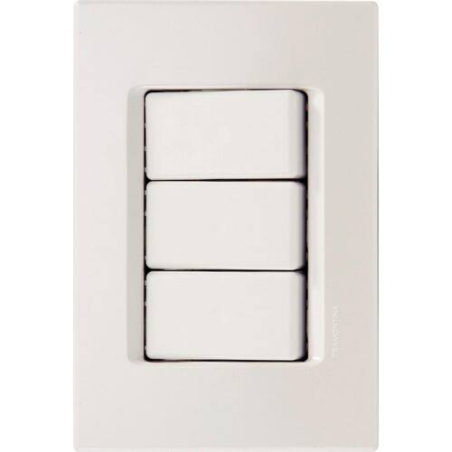 Fabricado em termoplástico na cor branco. O sistema é modular, em duas peças: placa e suporte, com gradual ajuste entre ambos, proporcionando perfeito acabamento da placa com a parede. Possuem furo oblongo para facilitar a fixação e a regulagem da placa à parede. Além disso, possuem furos para a fixação em parede de madeira. A fixação não é aparente. Acompanham suporte e parafusos para a instalação. Orientações . Observações A instalação e segurança: É importante que o produto seja instalado por profissional habilitado. Antes de instalar, desligue a energia elétrica. Características Gerais EAN13 7891435054712 DUN14 17891435054719 NCM 8536.50.90 Peso Líquido 0,0920 kg. Peso Bruto 0,0920 kg. Metragem 0,000600 m³. Dimensões Embalagem (Compr. X Larg. X Alt.) 150x 100x 40 mm. Dimensões Produto (Compr. X Larg. X Alt.) 122x 83x 42 mm. Cor 1 FFFFFF Hexa