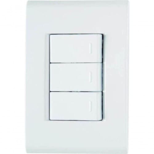 Conjunto 4x2 3 Interruptores Simples Tramontina Liz 10 A 250 V Branco As placas e módulo da Linha Liz sãofabricados em termoplástico com acabamento brilho na cor branca , que não retémpoeira, unindo qualidade e praticidade . O sistema é modular, com gradualajuste entre a placa e o suporte , proporcionando perfeito acabamento da placacom a parede . Possuem furo oblongo para facilitar a fixação e a regulagem daplaca á parede. Além disso , possuem furos para a fixação em parede de madeira.A fixação não aparente.Acompanham suporte e parafusos para instalação.Garantiade 5 anos. Recomendações de Uso: A instalação e segurança: É importante que o produto seja instalado por profissional habilitado. Antes de instalar, desligue a energia elétrica.- Foto meramente ilustrativa Informações Adicionais: