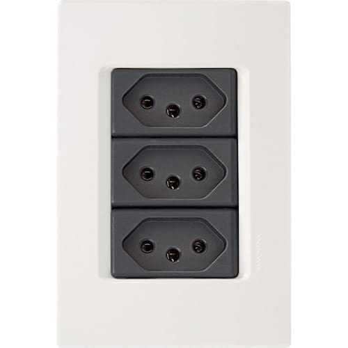 Fabricado em termoplástico, a placa na cor branca e os módulos na cor grafite. O sistema é modular, em duas peças: placa e suporte, com gradual ajuste entre ambos, proporcionando perfeito acabamento da placa com a parede. Possuem furo oblongo para facilitar a fixação e a regulagem da placa à parede. Além disso, possuem furos para a fixação em parede de madeira. A fixação não é aparente. Acompanham suporte e parafusos para a instalação. Orientações . Observações A instalação e segurança: É importante que o produto seja instalado por profissional habilitado. Antes de instalar, desligue a energia elétrica. Características Gerais EAN13 7891435054828 DUN14 17891435054825 NCM 8536.69.10 Peso Líquido 0,0920 kg. Peso Bruto 0,1000 kg. Metragem 0,000600 m³. Dimensões Embalagem (Compr. X Larg. X Alt.) 150x 100x 40 mm. Dimensões Produto (Compr. X Larg. X Alt.) 122x 83x 42 mm. Cor 1 FFFFFF Hexa Cor 2 333333 Hexa