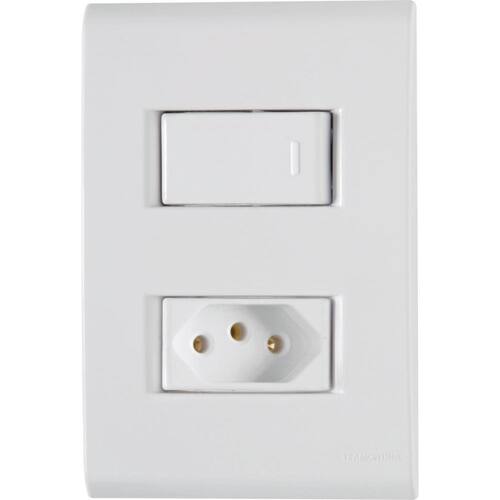 Conjunto 4x2 Com 1 Interruptor Simples 10 A 250 V E 1 Tomada 2p T 10 A 250 V Tramontina Liz Branco 120 Unidades Conjunto 4x2 com 1 Interruptor Simples 10 A 250 V e 1 Tomada 2P T 10 A 250 V Tramontina Liz Branco 120 unidades O Conjunto 4x2 com 1 Interruptor Simples 10 A 250 V e 1 Tomada 2P T 10 A 250 V Tramontina Liz Branco vai deixar sua casa muito mais completa e funcional. Produzido em termoplástico branco, ele vai garantir maior praticidade e proporcionar um acabamento perfeito entre a placa e a parede, sem deixar frestas e vincos na instalação. Além disso, possui furo oblongo que facilita a fixação e a regulagem da placa à parede e evita que ela fique desalinhada. Sua fixação não é aparente e pode ser utilizada tanto em paredes de alvenaria, quanto em paredes de madeira. A placa ainda pode ser trocada por outras cores da linha, garantindo maior versatilidade. Deixe sua casa equipada e completa com a Tramontina!