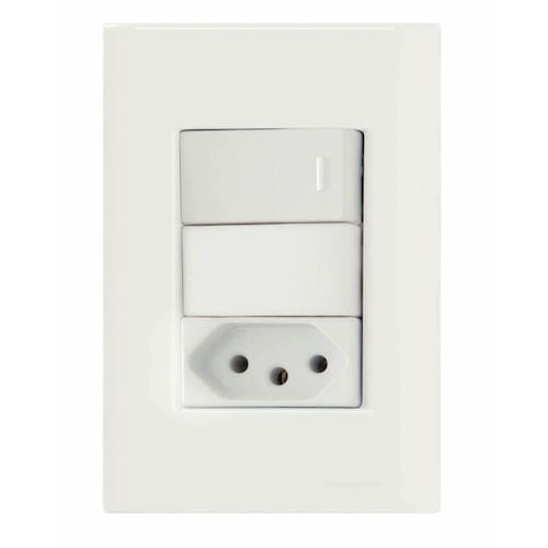 Qualidade, praticidade e eficácia para seus ambientes com o Conjunto 4x2 com 1 Interruptor Simples 10 A 250 V e 1 Tomada 2P+T 20 A 250 V Tramontina Giz Branco. Produzido em termoplástico, ele possui sistema modular com gradual ajuste entre a placa e o suporte, característica que garante um acabamento perfeito da placa com a parede. Sua regulagem e fixação é ainda muito fácil, pois conta com furo oblongo e também furos para a fixação em parede de madeira. Com a Tramontina, você garante os melhores itens para sua casa e todos os seus espaços! Orientações . Observações A instalação e segurança: É importante que o produto seja instalado por profissional habilitado. Antes de instalar, desligue a energia elétrica. Características Gerais EAN13 7891435056501 DUN14 17891435056508 NCM 8536.69.10 Peso Líquido 0,0800 kg. Peso Bruto 0,0870 kg. Metragem 0,000600 m³. Dimensões Embalagem (Compr. X Larg. X Alt.) 150x 100x 40 mm. Dimensões Produto (Compr. X Larg. X Alt.) 120x 83x 42 mm. Cor 1 FFFFFF Hexa