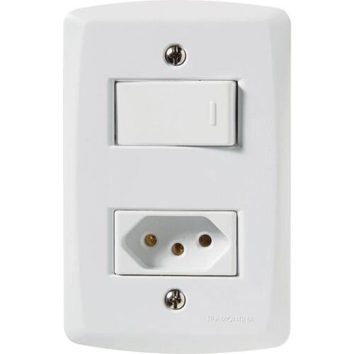 Conjunto 4x2 Com 1 Interruptor Simples 10 A 250 V E 1 Tomada 2p+t 20 A 250 V Tramontina Lux2 Branco Conjunto 4x2 com 1 Interruptor Simples 10 A 250 V e 1 Tomada 2P T 20 A 250 V Tramontina Lux2 Branco Utilize o Conjunto 4x2 com 1 Interruptor Simples 10 A 250 V e 1 Tomada 2P T 20 A 250 V Tramontina Lux2 Branco e tenha um item completo para ligar equipamentos elétricos e eletrônicos e ainda acender as luzes do ambiente. Produzido em termoplástico na cor branca com acabamento em brilho, ele vai agregar funcionalidade nos ambientes onde for inserido. Sua instalação é muito simples, pois tem sistema modular onde a placa possui suporte incorporado, além de acompanhar parafusos adequados para sua fixação. Com a Tramontina, você tem as melhores escolhas para sua casa!