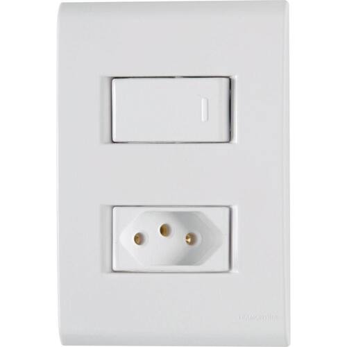 O Conjunto 4x2 com 1 Interruptor Simples 10 A 250 V e 1 Tomada 2P T 10 A 250 V Tramontina Liz Branco vai deixar sua casa muito mais completa e funcional. Produzido em termoplástico branco, ele vai garantir maior praticidade e proporcionar um acabamento perfeito entre a placa e a parede, sem deixar frestas e vincos na instalação. Além disso, possui furo oblongo que facilita a fixação e a regulagem da placa à parede e evita que ela fique desalinhada. Sua fixação não é aparente e pode ser utilizada tanto em paredes de alvenaria, quanto em paredes de madeira. A placa ainda pode ser trocada por outras cores da linha, garantindo maior versatilidade. Deixe sua casa equipada e completa com a Tramontina!