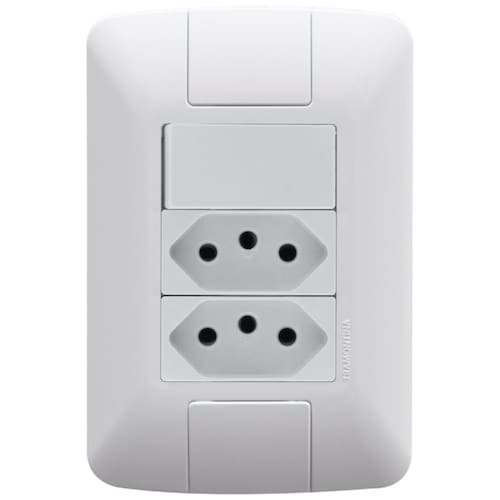 Conjunto 4x2 com 1 Interruptor Simples 6 Amperes 250 Volts e 2 Tomadas 2P+T 20 Amperes 250 Volts Aria Branco - 57241086 - TRAMONTINA