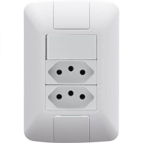 Conjunto 4x2 com 1 Interruptor Simples 6 A 250 V e 2 Tomadas 2P+T 10 A 250 V Tramontina Aria em Branco