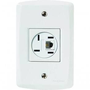 Conjunto 4x2 Com 1 Tomada Telefone 4p E Rj11 Tramontina Lux2 Branco As placas e módulo da Linha Lux sãofabricados em termoplástico com acabamento brilho na cor branca , que não retémpoeira, unindo qualidade e praticidade . O sistema é modular, com gradualajuste entre a placa e o suporte , proporcionando perfeito acabamento da placacom a parede . Possuem furo oblongo para facilitar a fixação e a regulagem daplaca á parede. Além disso , possuem furos para a fixação em parede de madeira.A fixação não aparente.Acompanham suporte e parafusos para instalação.Garantiade 5 anos. Recomendações de Uso: A instalação e segurança: É importante que o produto seja instalado por profissional habilitado. Antes de instalar, desligue a energia elétrica.- Foto meramente ilustrativa Informações Adicionais: