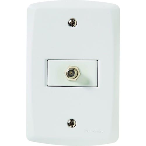 Garanta facilidade na hora de conectar sua televisão com o receptor da TV a cabo ou antena, com o Conjunto 4x2 com 1 Tomada TV/SAT Coaxial Tramontina Lux2 Branco! Produzido em termoplástico na cor branca com acabamento em brilho, ele vai agregar funcionalidade nos ambientes onde for inserido. Sua instalação é muito simples, pois tem sistema modular onde a placa possui suporte incorporado, além de acompanhar parafusos adequados para sua fixação. Com a Tramontina, você tem as melhores escolhas para sua casa! Orientações . Observações A instalação e segurança: É importante que o produto seja instalado por profissional habilitado. Antes de instalar, desligue a energia elétrica. Características Gerais EAN13 7891435043075 DUN14 17891435043072 NCM 8536.90.90 Peso Líquido 0,0360 kg. Peso Bruto 0,0420 kg. Metragem 0,000600 m³. Dimensões Embalagem (Compr. X Larg. X Alt.) 150x 100x 40 mm. Dimensões Produto (Compr. X Larg. X Alt.) 122x 79x 35 mm. Cor 1 FFFFFF Hexa