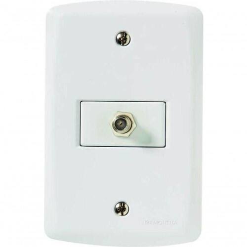 Conjunto 4x2 Com 1 Tomada Tv/sat Coaxial Tramontina Lux2 Branco As placas e módulo da Linha Lux sãofabricados em termoplástico com acabamento brilho na cor branca , que não retémpoeira, unindo qualidade e praticidade . O sistema é modular, com gradualajuste entre a placa e o suporte , proporcionando perfeito acabamento da placacom a parede . Possuem furo oblongo para facilitar a fixação e a regulagem daplaca á parede. Além disso , possuem furos para a fixação em parede de madeira.A fixação não aparente.Acompanham suporte e parafusos para instalação.Garantiade 5 anos. Recomendações de Uso: A instalação e segurança: É importante que o produto seja instalado por profissional habilitado. Antes de instalar, desligue a energia elétrica.- Foto meramente ilustrativa Informações Adicionais: