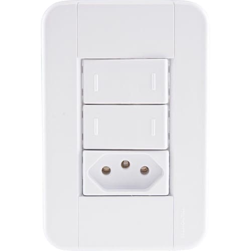 Utilize o Conjunto 4x2 com 2 Interruptores Paralelos 10 A 250 V e 1 Tomada 2P+T 10 A 250 V Tramontina Tablet Branco e tenha um item completo para ligar equipamentos elétricos e eletrônicos e ainda acender as luzes do ambiente. Produzido em termoplástico com acabamento brilho na cor branca, ele possui sistema modular com o suporte incorporado e furo oblongo que facilita a fixação e a regulagem da placa à parede, deixando-a reta; além disso, sua instalação não fica aparente, o que deixa seu cômodo ainda mais bonito. O conjunto perfeito para sua casa e que acompanha parafusos para a instalação. Orientações . Observações A instalação e segurança: É importante que o produto seja instalado por profissional habilitado. Antes de instalar, desligue a energia elétrica. Características Gerais EAN13 7891435064933 DUN14 17891435064930 NCM 8536.69.10 Peso Líquido 0,0820 kg. Peso Bruto 0,0890 kg. Metragem 0,000600 m³. Dimensões Embalagem (Compr. X Larg. X Alt.) 150x 100x 40 mm. Dimensões Produto (Compr. X Larg. X Alt.) 123x 82x 42 mm. Cor 1 FFFFFF Hexa