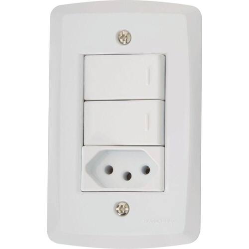 Conjunto 4x2 com 2 Interruptores Paralelos 10 A 250 V e 1 Tomada 2P T 20 A 250 V Tramontina Lux2 Branco