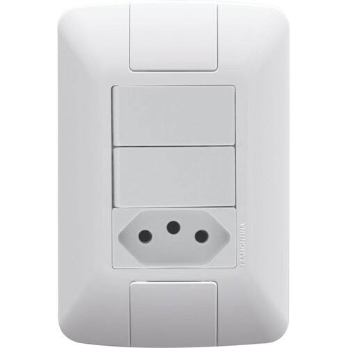 Introduza materiais de qualidade em sua rotina para obter maior eficiência e qualidade onde você estiver, o Conjunto 4x2 com 2 Interruptores Paralelos 6 A 250 V e 1 Tomada 2P+T 20 A 250 V Tramontina Aria Branco é perfeito para sua casa ou ambiente de trabalho. Produzido em termoplástico com acabamento brilho na cor branca, ele possui sistema modular com o suporte incorporado e furo oblongo que facilita a fixação e a regulagem da placa à parede, deixando-a reta; além disso, sua instalação não fica aparente, o que deixa seu cômodo ainda mais bonito. Um item ideal para sua casa, que acompanha suporte e parafusos para a instalação! Orientações . Observações A instalação e segurança: É importante que o produto seja instalado por profissional habilitado. Antes de instalar, desligue a energia elétrica. Características Gerais EAN13 7891435938173 DUN14 17891435938170 NCM 8536.69.10 Peso Líquido 0,0750 kg. Peso Bruto 0,0765 kg. Metragem 0,000608 m³. Dimensões Embalagem (Compr. X Larg. X Alt.) 190x 80x 40 mm. Dimensões Produto (Compr. X Larg. X Alt.) 120x 80x 35 mm. Cor 1 FFFFFFF Hexa