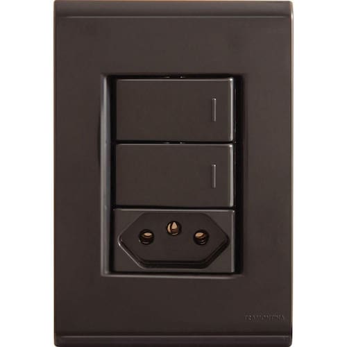 A qualidade, versatilidade e a beleza que você busca em seus projetos elétricos está presente em todos os detalhes do conjunto 4x2 com 2 interruptores simples 10 A 250 V e 1 tomada 2P+T 10 A 250 V Tramontina Liz grafite. Com sistema modular com gradual ajuste entre a placa e o suporte, ele proporciona um acabamento perfeito da placa com a parede, além de ter fixação que não fica aparente. Sua fabricação é em termoplástico com acabamento brilho, material que não retém poeira e agrega qualidade e praticidade. Além dessas características, o conjunto possui furo oblongo que facilita a fixação e a regulagem da placa à parede e furos específicos para a fixação em paredes de madeira! ;Acabamento brilho na cor grafite.