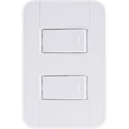 Conjunto 4x2 Com 2 Interruptores Simples 10 A 250 V Tramontina Tablet Branco Conjunto 4x2 com 2 Interruptores Simples 10 A 250 V Tramontina Tablet Branco O Conjunto 4x2 com 2 Interruptores Simples 10 A 250 V Tramontina Tablet Branco é a escolha certa para deixar seus ambientes iluminados. Produzido em termoplástico com acabamento brilho na cor branca, ele possui sistema modular com o suporte incorporado e furo oblongo que facilita a fixação e a regulagem da placa à parede, deixando-a reta; além disso, sua instalação não fica aparente, o que deixa seu cômodo ainda mais bonito. O conjunto perfeito para sua casa e que acompanha parafusos para a instalação.