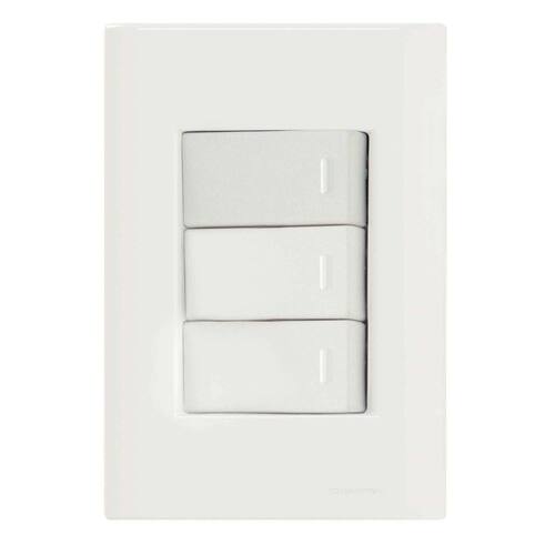 Para iluminar os ambientes com mais qualidade e ligar ou desligar diferentes lâmpadas em único item, o Conjunto 4x2 com 3 Interruptores Simples 10 A 250 V Tramontina Giz Branco é a escolha perfeita! Produzido em termoplástico, ele possui sistema modular com gradual ajuste entre a placa e o suporte, característica que garante um acabamento perfeito da placa com a parede. Sua regulagem e fixação é ainda muito fácil, pois conta com furo oblongo e também furos para a fixação em parede de madeira. Com a Tramontina, você garante os melhores itens para sua casa e todos os seus espaços! Orientações . Observações A instalação e segurança: É importante que o produto seja instalado por profissional habilitado. Antes de instalar, desligue a energia elétrica. Características Gerais EAN13 7891435056570 DUN14 17891435056577 NCM 8536.50.90 Peso Líquido 0,0840 kg. Peso Bruto 0,0900 kg. Metragem 0,000600 m³. Dimensões Embalagem (Compr. X Larg. X Alt.) 150x 100x 40 mm. Dimensões Produto (Compr. X Larg. X Alt.) 120x 83x 35 mm. Cor 1 FFFFFF Hexa