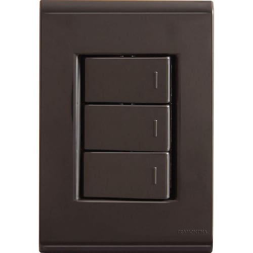 Se você busca um item diferenciado para compor seus ambientes, sem abrir mão da qualidade de suas instalações elétricas, o conjunto 4x2 com 3 interruptores simples 10 A 250 V Tramontina Liz grafite é indispensável. Produzido em termoplástico com acabamento brilho na cor grafite, ele não retém poeira e conta com sistema modular com gradual ajuste entre a placa e o suporte, o que proporciona um acabamento perfeito da placa com a parede. O conjunto ainda conta com furo oblongo para facilitar a fixação e a regulagem da placa à parede e furos específicos para a fixação em parede de madeira, que não fica aparente! ;Acabamento brilho na cor grafite.