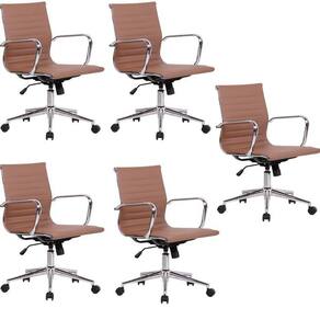 Conjunto com 10 cadeiras office com encosto baixo, estrutura em aço cromado e revestida em PU, possui regulagem de altura do assento (mínimo 89cm e máximo 98cm) com pistão á gás e sistema relax, possui base giratória em aço cromado com rodízios em nylon. Altura do Conjunto: 98 cm Ambiente: null Ambiente Principal: Escritório Cor: Marrom Informação Complementar: 5x Cadeira de Escritório Diretor Esteirinha em Sintético Sevilha Marrom Escuro Largura: 59 cm Altura: 98 cm Peso: 10 kg Profundidade: 60 cm Necessita Montagem: Sim