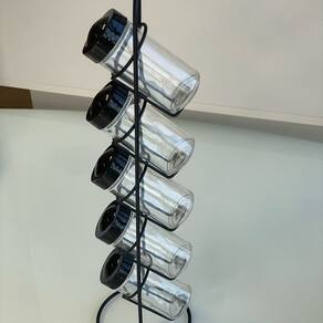Cores: Suporte em Preto Inox e Potes em Vidro Transparente.