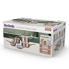 Beleza e desempenho que transformam sua cozinha! O Conjunto 5 Peças Ceramic Rose Gold da Rochedo reúne elegância, praticidade e qualidade em um único jogo de panelas.