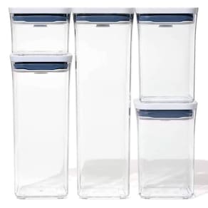 Conjunto 5 Potes Herméticos Oxo POP 2.0 Eleve a organização para o próximo nível com o conjunto de potes POP de 5 peças da OXO Good Grips Herméticos, empilháveis, eficientes em termos de espaço e agora totalmente laváveis na máquina de lavar louças, estes potes de armazenamento de alimentos são livres de BPA e cabem em qualquer espaço. Novas formas e tamanhos oferecem novas possibilidades para armazenar itens essenciais do dia a dia, como farinha, açúcar, café, cereais, aveia, grãos, massas e especiarias. Atualizamos o POP com encaixes práticos e mantivemos os cantos curvos para uma organização suave. Os POP Potes não são apenas para serem na cozinha, use-os onde quiser mais organização. Características Gerais: - 1x Pote 2,1 litros - 1x Pote 1,6 litros - 2x Potes de 1 litro - 1x Pote 0,4 litros - Livres de BPA - Ótima vedação - Botão na tampa para abrir e fechar - Vai ao lava-louças Especificações técnicas: - Marca: Oxo - Modelo: POP 2.0 - Cor: transparente e branca - Dimensões AxLxP : 36,58cm x 33,53cm x 12,19cm
