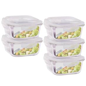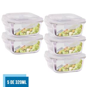 Conjunto com 5 Potes de Vidro com Tampa Hermética Quadrado 320ml