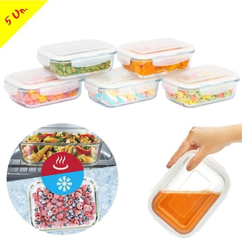 - - Kit 5 Potes de Vidro Retangular com Tampa Hermética 370ml - -- Querendo trocar seus Potes de plástico por um pote de vidro com alta qualidade, resistência, durabilidade e fácil de limpar Então me acompanhe nessa leitura e surpreenda-se com os Potes de Vidro Hermético - Em casa Tem.- Existem muitos malefícios que podem ser causados devido ao uso do plástico para preservar os seus alimentos. Sabia que quando aquecido, ele pode liberar toxinas sobre a sua comida Isso pode causar doenças graves com o passar do tempo. Sem falar nas manchas de alimentos que ficam no pote de plástico, não é mesmo- Com os Potes de Vidro Hermético, você não estará sujeito à isso. Além de serem muito resistentes, eles também suportam a variação de temperaturas em até 300ºC, podendo ir ao freezer e micro-ondas. São muito fáceis de serem lavados, pois possuem o anel de silicone para vedação removível, não deixa o cheiro se espalhar e sem qualquer risco de vazamento, mantém o pote super vedado- Aliando qualidade, praticidade e preço justo, apresentamos o Pote de Vidro Hermético. O Pote ideal para o seu dia-a-dia.Diferenciais Anel de silicone removível Possui 4 super travas Mantém os alimentos frescos por mais tempo Suporta uma variação térmica de até 300C não é indicado dar choque térmico Evita que o cheiro se espalhe devido a sua super vedação Vai ao forno convencional sem a tampa , forno elétrico sem a tampa , microondas sem a tampa e freezer Tampa livre de BPA Bisfenol A , ou seja, não é tóxica Fácil de limpar e higienizar, pois pode tirar o anel de silicone e vedação para limpeza Sem risco de vazamento devido a sua super vedação Super resistente, Vidro BorosilicatoIdeal para: Utilizar como marmita no dia-a-dia Armazenar os alimentos na geladeira Servir à mesa com aperitivos Aquecer os alimentos no micro-ondas Guardar os alimento no freezer Presentear a mãe ou a sogra.....Ficha TécnicaModelo: Pote de Vidro RetangularMarca: Em casa TemMaterial: Vidro Borosilicato, tampa de plástico e anel vedação de siliconeCapacidade: 370mlTamanho: 15 x 11 x 6cm comprimento x largura x altura Peso: 375gItem incluso: 1 Pote Hermético Cuidadosamente embalado DÚVIDAS FREQUENTES:1 - Os produtos são novosR: Todos os produtos são novos e com garantia.4 - Como são realizadas as entregasR: Sim, nos anúncios que exibirem essa opção. Imagens meramente ilustrativas
