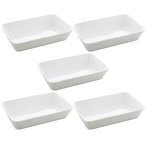 Conjunto 5 Travessas Refratários de Porcelana Branca 750ml Buffet Restaurante Línea Lyor.