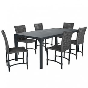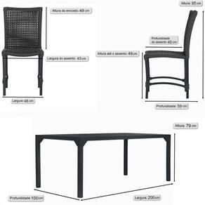 Mesa Ripada 100x200cm com 6 cadeiras Cannes de alumínio pintura preta e trama tela de corda náutica Trama