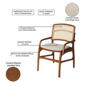 AS IMAGENS SÃO MERAMENTE ILUSTRATIVAS E PODEM SOFRER VARIAÇÕES DE COR E PEQUENOS DETALHES DE ACORDO COM O SEU MONITOR, ILUMINAÇÃO DO AMBIENTE E ATÉ MESMO A SUA PERCEPÇÃO VISUAL.Conjunto 6 Cadeiras de Cozinha FlorenÃa em Madeira Jequitibà Terra BraÃo Encosto Palha Linho Bege