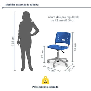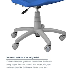 Quais as vantagens de uma cadeira escolar com rodinhas? A mobilidade é o maior benefício! Com rodízios, o movimento e rearranjo do ambiente fica mais fácil. Produto Montado: Não Ambiente Principal: Escritório codigo_ean: 7900288222923 Cor: Azul Cor da Base: Cinza Cor do Produto: Azul Empilhável: Não Enchimento do Assento: Não Possui Encosto Reclinável: Não Giratória: Sim Itens Inclusos: 6 Cadeiras KIT: Sim Linha ou Coleção: Elo Manual de Montagem e Instalação: https://product-hub-prd.madeiramadeira.com.br/260554842/documents/d09b1ef7-0a4b-4620-9ec7-1797897cefdc30303511973217513727824703.pdf Marca: Prima Design Material da Base: Metal Necessita Montagem: Não Origem do Produto: Nacional Peso: 5 kg Possui Apoio para Braços: Não Possui Certificação ABNT: Não Possui LED: Não Possui Massagem: Não Possui Regulagem de Altura de Assento: Sim Possui Regulagem de Altura do Encosto: Não Possui Rodízio: Sim Quantidade do Produto: 6 Recomendações de Uso, Manutenção e Limpeza: A estrutura deve ser limpa utilizando pano seco de algodão ou flanela. Se necessário, utilize pano umedecido apenas com água, secando o móvel em seguida. Não utilize solvente, álcool, acetona, lustra móveis, produtos abrasivos e outros produtos que contenham soda e ou ácidos para limpar e tirar manchas dos móveis. Não expor os móveis à luz solar e ambientes com umidade relativa elevada. Manter a estrutura metálica limpa, utilizando pano seco ou cera a base de silicone. Rodízio com Trava: Não Suporta Até (kg): 120 kg Tipo de Cadeira de Escritório: Cadeira Secretária Tipo de Mecanismo da Cadeira: Simples Marca: Não Informado